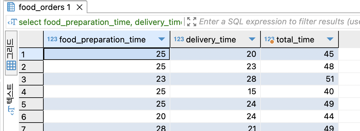 food_preparation_time + delivery_time as total_time